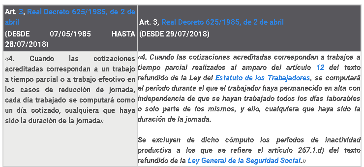 Desde el 29 de julio de 2018 cuando las cotizaciones acreditadas correspondan a trabajo a tiempo parcial, se computará -con independencia de la jornada y la prestación de servicios todos los días laborales o solo algunos- el periodo durante el que el trabajador haya permanecido en alta.